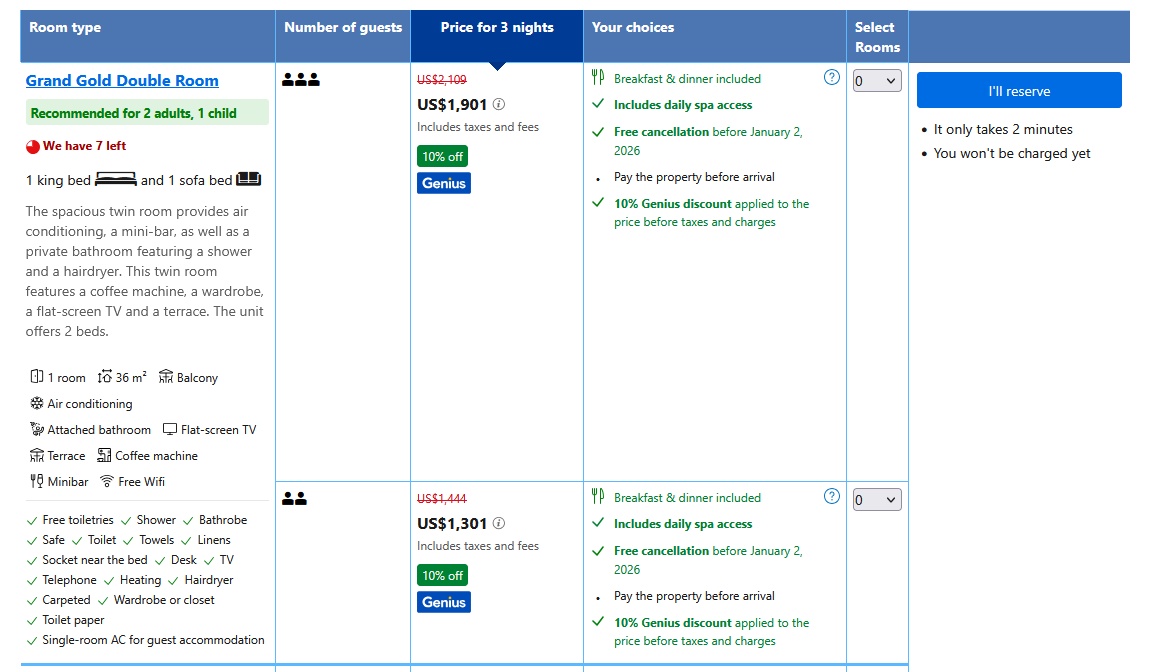 Logged in as a Genius member, the hotel shows a regular price of $2109 and a nice looking 10% Genius discount bringing it down to $1901. Cool, right?