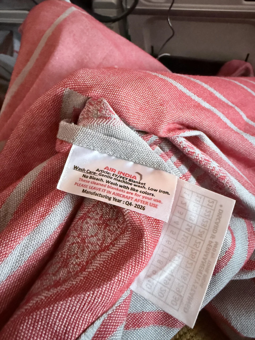 Had a slightly confusing moment on a recent Air India flight from Delhi to Newark. When I checked the tag on the blanket they handed out, it said it was manufactured in Q4 of 2026. The flight itself obviously wasn’t in the future, so the label caught my eye. Now I’m wondering if...