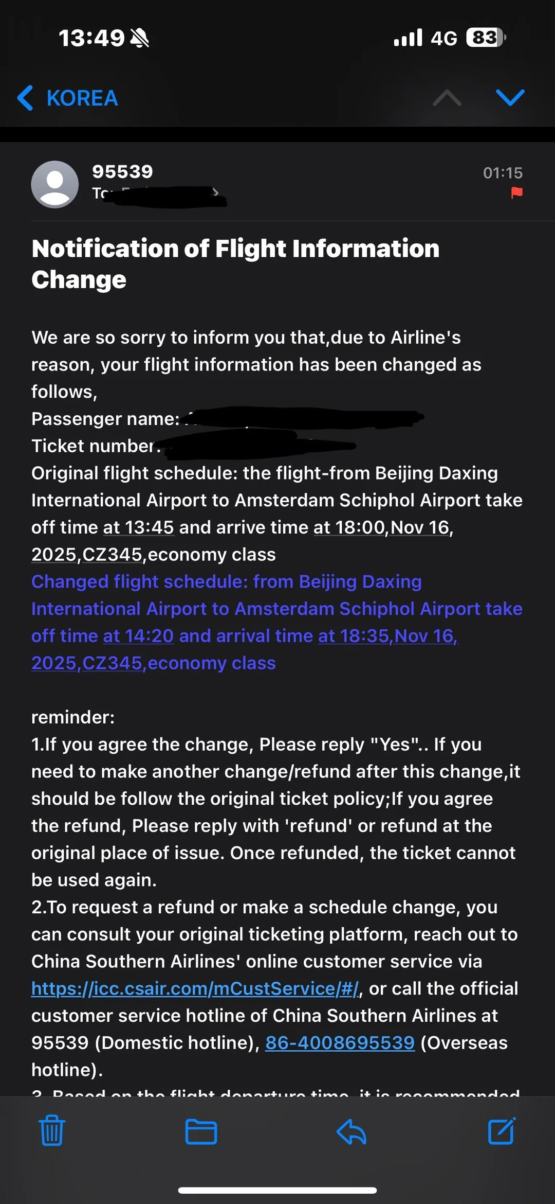 China Southern Airlines has canceled several flights today, affecting cities