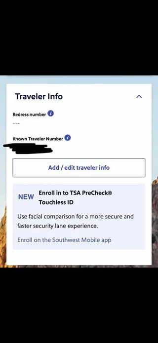 Was checking my Southwest account today and noticed a new option under my profile for TSA PreCheck Touchless ID it says you can enroll through the app for faster, facial-recognition security screening. The link doesn’t seem to work yet on my app, but looks like it’s about to...
