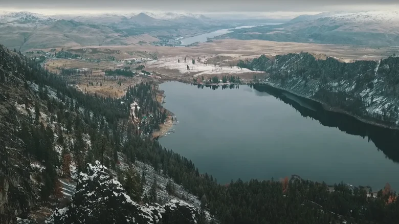 shimmering blue lake a mix you don’t often see in the Pacific Northwest. It’s